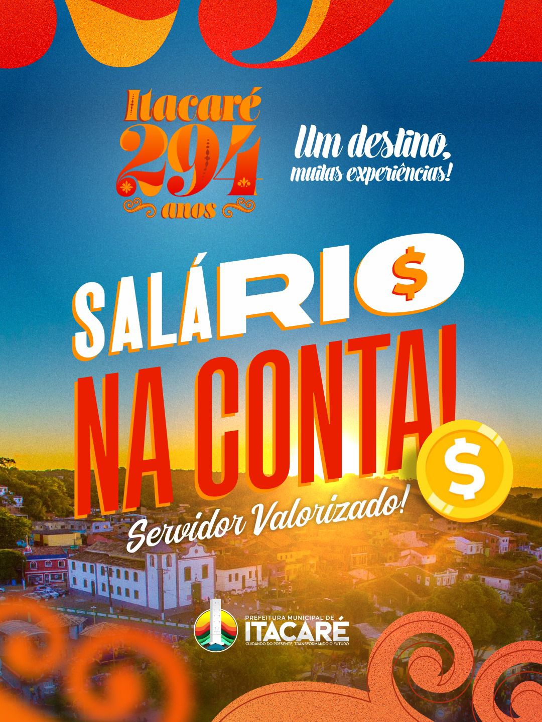 Prefeitura de Itacaré antecipa salários em comemoração aos 294 anos do município e reafirma compromisso com os servidores